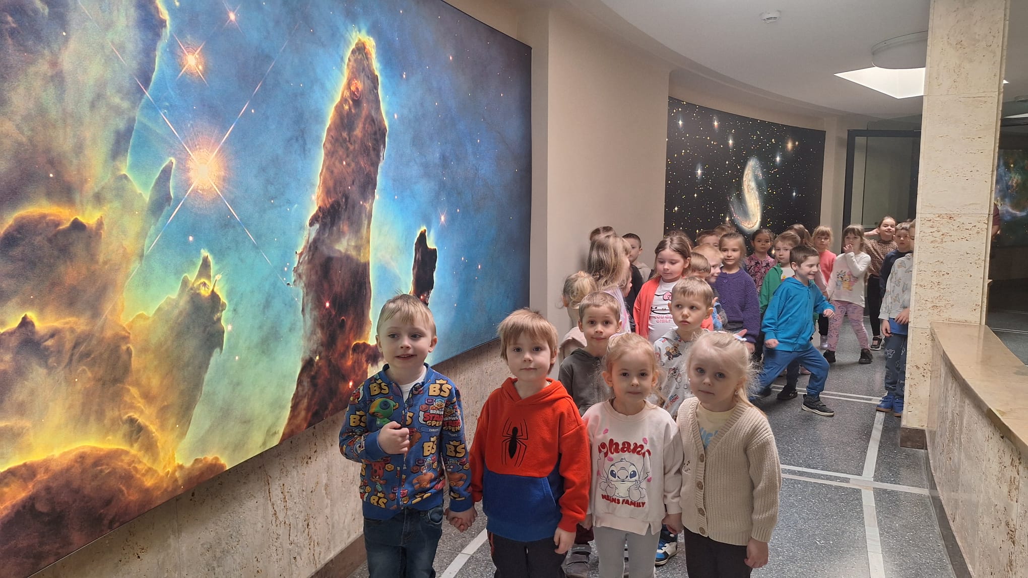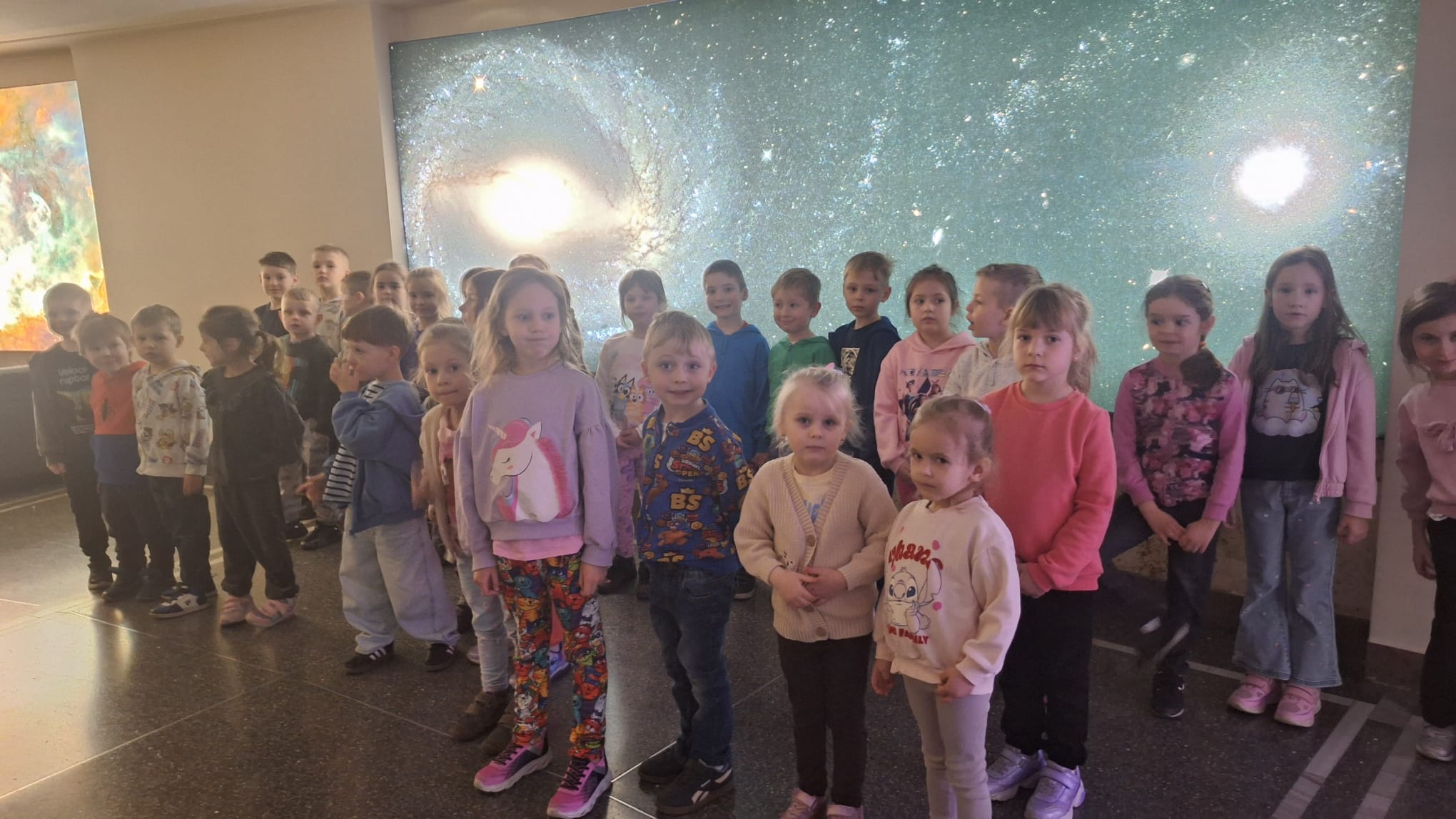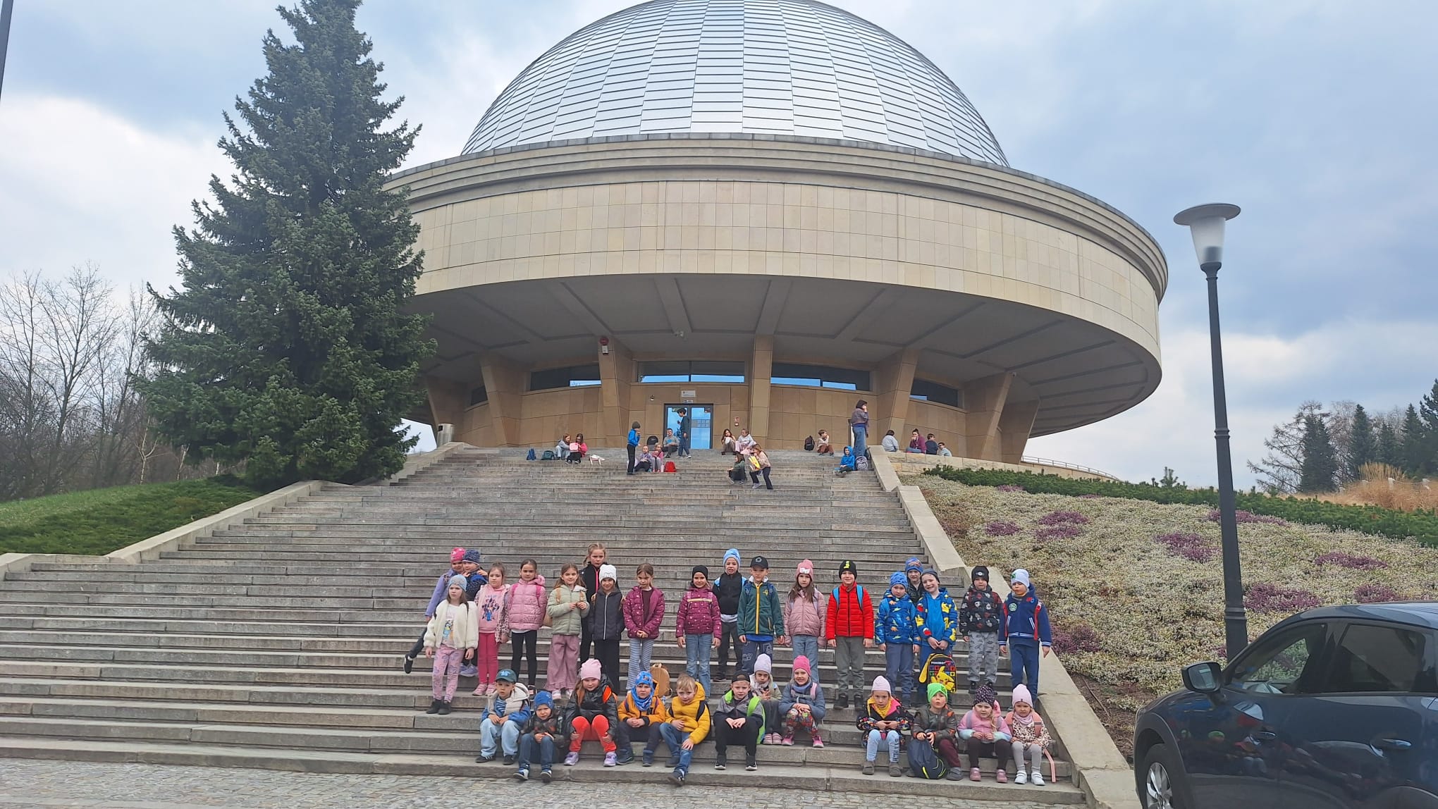 W dniu dzisiejszym dzieci z grupy "Żabki" i "Biedronki" wybrały się na wycieczkę do Planetarium i Obserwatorium Astronomicznego im. Mikołaja Kopernika w Chorzowie. Głównym punktem programu był seans pt. „Jesteśmy gwiazdami”, który ukazał dzieciom niezwykłą tajemnicę wszechświata. Seans ten, podzielony na dwie części, zabrał maluchy w podróż po niebie, prowadzoną na żywo przez lektora. Dzieci mogły podziwiać aktualne gwiazdozbiory i inne ciała niebieskie. Następnie, w drugiej części projekcji, zgłębiły tajniki powstawania życia i ewolucji gwiazd. Po seansie udaliśmy się na spacer po malowniczej okolicy planetarium. Wspólne wędrówki na świeżym powietrzu pozwoliły im odpocząć i cieszyć się urokami budzącej do życia przyrody. Wyjazd ten dostarczył maluchom mnóstwo niezapomnianych wrażeń oraz cennych informacji na temat wszechświata