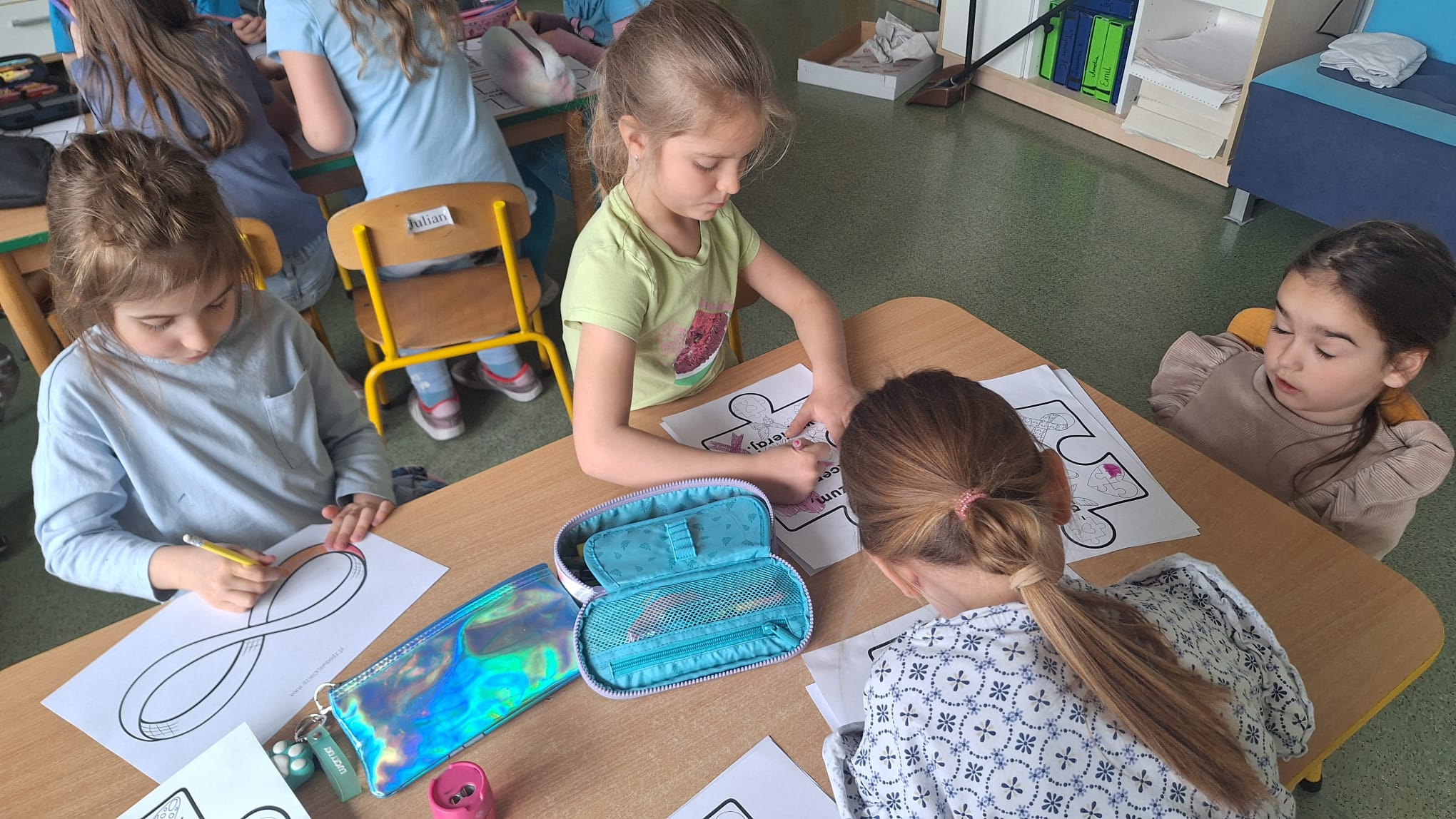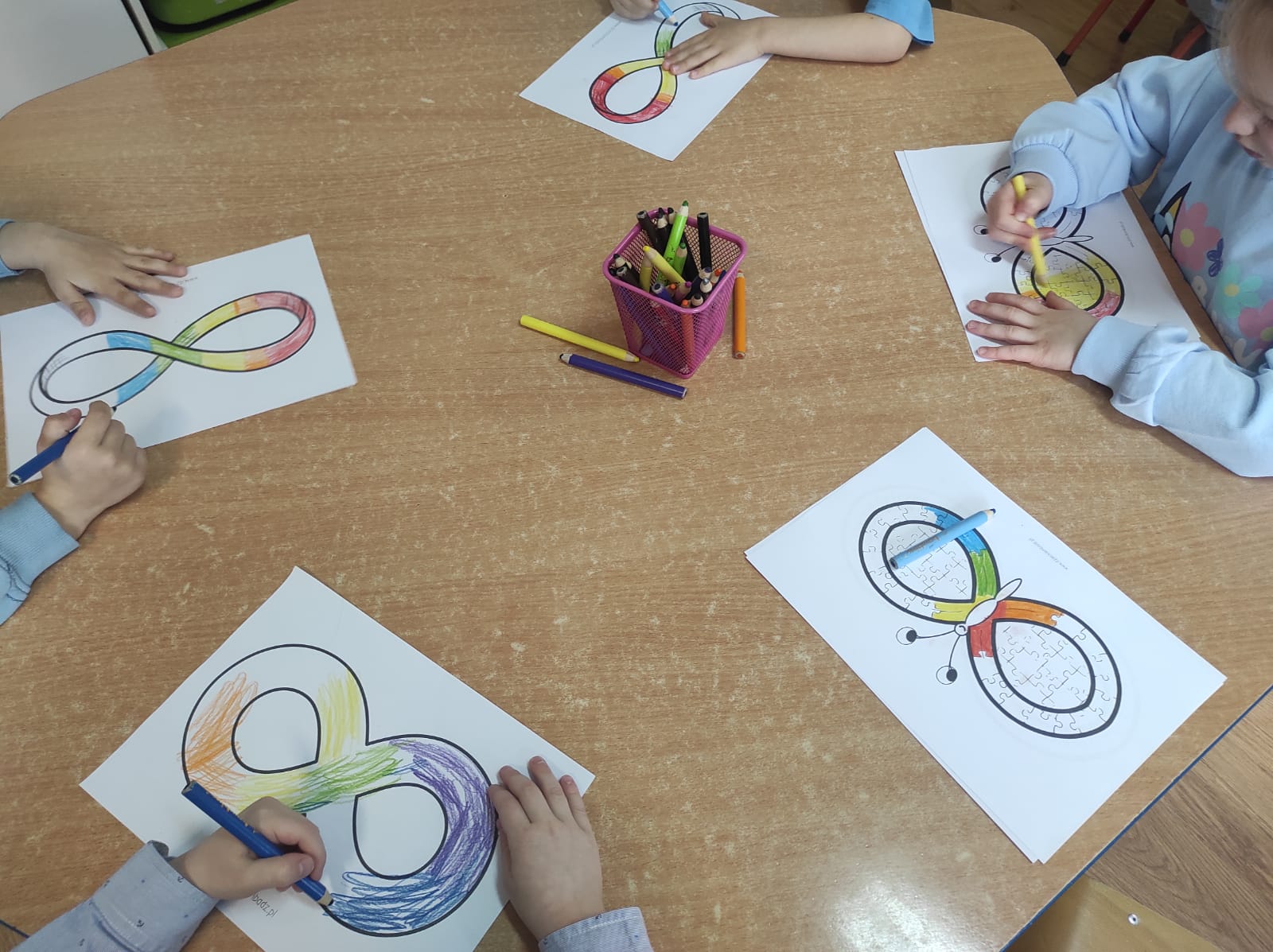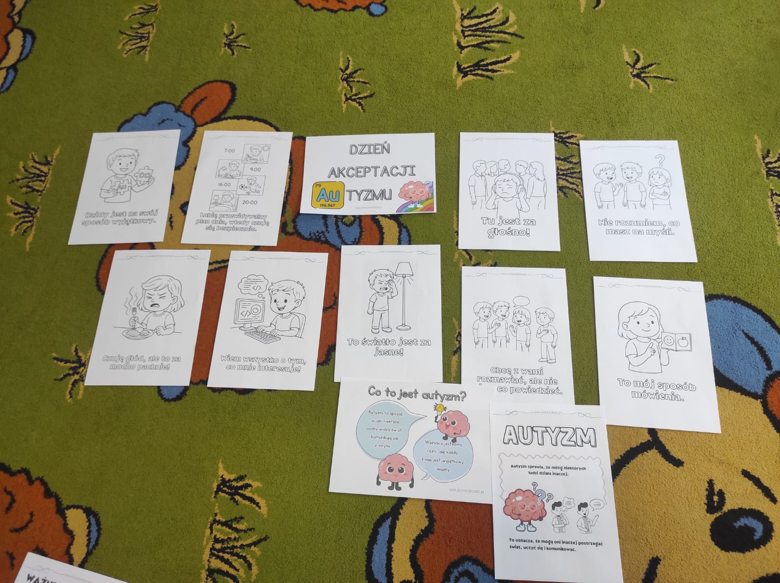 2 kwietnia to dzień, w którym na całym świecie obchodzi się Dzień Świadomości Autyzmu. Celem tego wydarzenia jest propagowanie wiedzy na temat spektrum autyzmu, budowanie wrażliwości społecznej oraz zwrócenie uwagi na trudności, z jakimi zmagają się osoby autystyczne w życiu codziennym. Przedszkolaki poprzez rozmowy, wysłuchanie bajki ,, Złoty Motylek" oraz obejrzenie filmu edukacyjnego , zapoznały się z pojęciem- Autyzm oraz cechami charakterystycznymi występującymi u osób z tym zaburzeniem. ,, Biedronki " i ,,Żabki" wykonały prace plastyczne związane z symbolami autyzmu- symbol nieskończoności oraz puzzle z hasłami motywacyjnymi . Ten ważny dzień był dla przedszkolaków cenną lekcją empatii, szacunku i akceptacji dla osób z autyzmem.