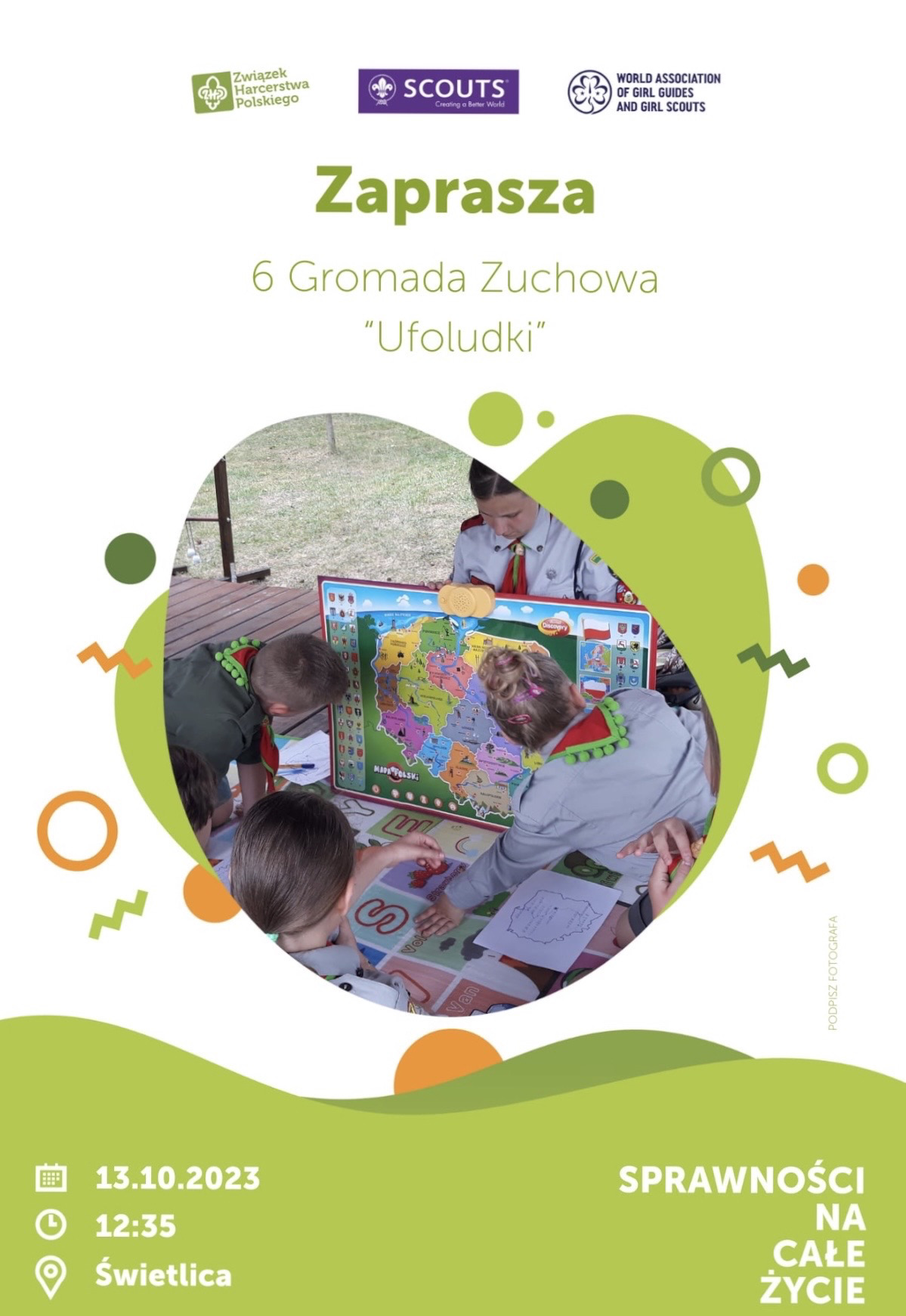 Zapraszamy na zbiórkę naborową 6 Gromady Zuchowej "Ufoludki" 13.10.2023 w godzinach 12.35-13.35.